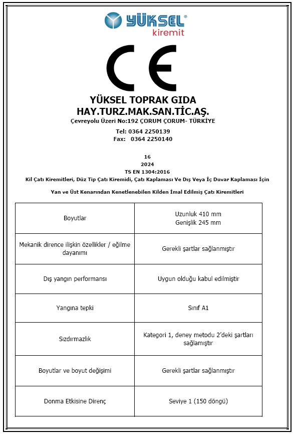 Granada Kiremit için CE belgesi