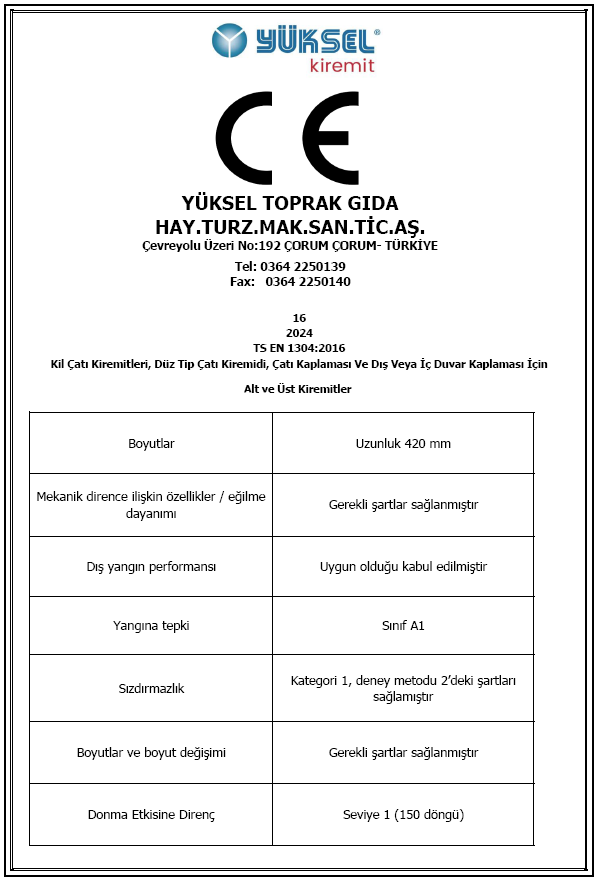 Osmanlı Kiremit için CE belgesi